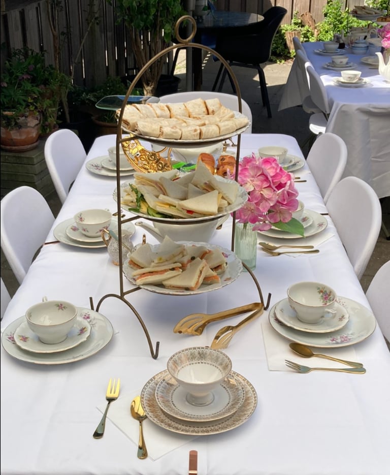 Esther en haar man Arno hebben met veel zorg en aandacht mijn high tea geserveerd voor ongeveer dertig personen. Het was bij ons thuis en in de tuin, wat het zo ontzettend gezellig maakte 🍀 Zij hebben alles geregeld: stoelen, tafels, tafelkleden, menu en bloemen. De hartige en zoete hapjes waren heerlijk en er was zelfs aan de kinderen gedacht. Zij hebben oog voor detail en ik kon zorgeloos mijn verjaardag thuis vieren. Het servies was prachtig en ik mocht de mooiste uitkiezen. Wat voelde ik me jarig! 🌺 Aan het eind van onze afgesproken tijd, hadden ze nog gewacht met opruimen totdat de laatste gasten weg waren. Dat vond ik zo attent 💕. En ze hadden ze mijn hele woonkamer zo mogelijk schoon achtergelaten. Wat een service! Ik denk er nog steeds met heel veel plezier aan deze dag 🌻
